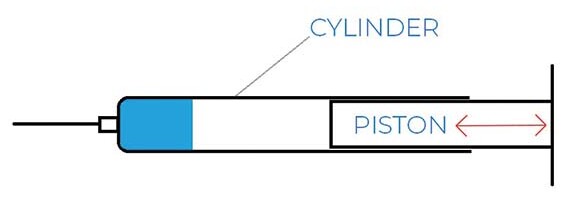 向后拉注射器的活塞會(huì)�(chǎn)生吸力,將液體拉入氣缸,同時(shí)向前推動(dòng)活塞將液體通過(guò)注射器的推頭排出(圖 1)�