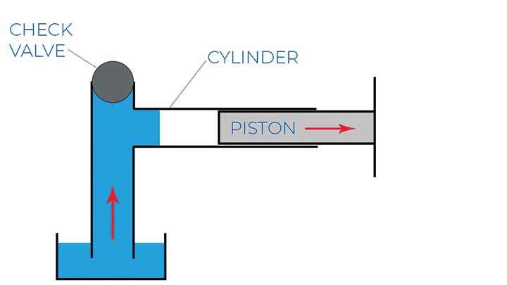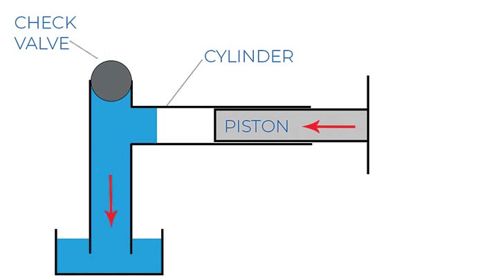 � 3 顯示了用于防止流體流入氣缸的止回閥。這會(huì)在氣缸內(nèi)�(chǎn)生負(fù)壓,一旦活塞向外移�(dòng),就可以從底部吸取流體�