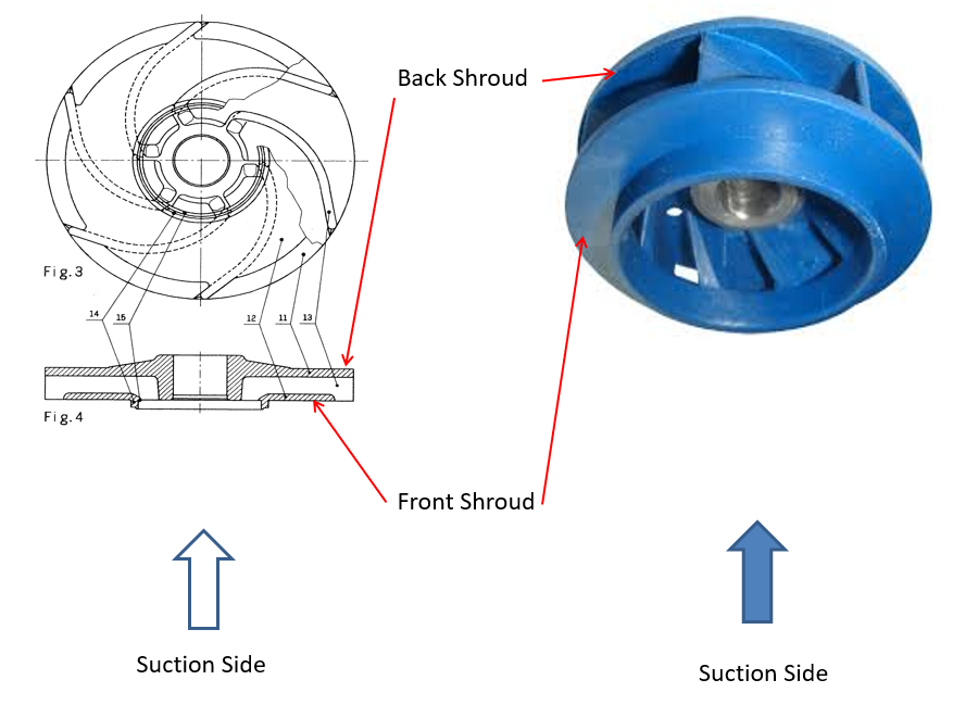 第一�(gè),可以說是最�(jiān)固的�(shè)�(jì)是封閉式葉輪。在這種�(shè)�(jì)中,液體沿著由葉片形成的通道沿路徑向下流�(dòng),并通過兩�(gè)�(hù)罩在頂部和底部(或根�(jù)軸方向的前后�“封閉”。下面的兩張圖片說明了這種�(shè)�(jì)�