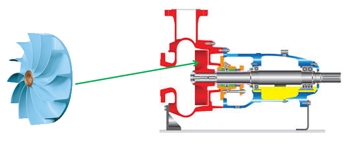 下圖很好地展示了葉輪,旁邊的剖面圖說明了泵內(nèi)的葉輪位�