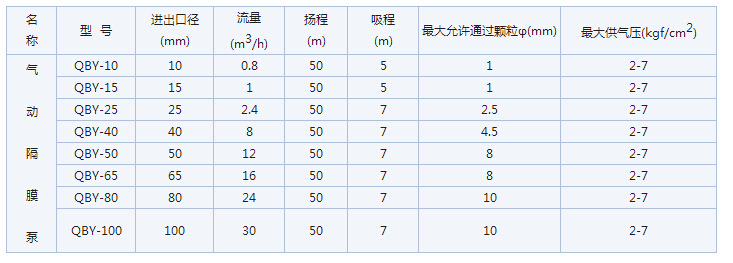 QBY不銹鋼氣動隔膜泵性能參數(shù)表